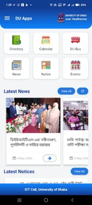 ICT (Information & Communication Technology) Cell, University of Dhaka কর্তৃক ডেভেলপকৃত DU Apps আপনার ঢাকা বিশ্ববিদ্যালয় অভিজ্ঞতাকে এক নতুন উচ্চতায় নিয়ে যাবে। এটি কেবল একটি অ্যাপ্লিকেশন নয়, এটি ঢাকা বিশ্ববিদ্যালয়ের বিশাল জ্ঞান ও তথ্যের এক নির্ভরযোগ্য প্রবেশদ্বার, যা আপনাকে রাখবে সর্বদাই সংযুক্ত ও আপডেটেড।