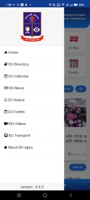 বিশ্ববিদ্যালয়ের প্রতিটি মুহূর্ত উপভোগ করুন DU Apps-এর সাথে। আসন্ন সাংস্কৃতিক, সেমিনার বা অন্যান্য সকল আয়োজনের বিস্তারিত তথ্য ও সময়সূচী আপনার নখদর্পণে। বিশ্ববিদ্যালয়ের বিভিন্ন গুরুত্বপূর্ণ ইভেন্ট ও কর্মকাণ্ডের আকর্ষণীয় ভিডিও চিত্র উপভোগের সুযোগও রয়েছে এখানে। শিক্ষার্থীদের জন্য রয়েছে বিশ্ববিদ্যালয়ের বাসের হালনাগাদ সময়সূচী, যা ক্যাম্পাসে যাতায়াতকে করবে আরও সহজ ও চাপমুক্ত।
