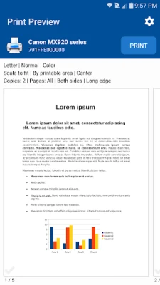 এই অ্যাপটি স্টোরে থাকা ফাইল, ইমেইল অ্যাটাচমেন্ট (যেমন পিডিএফ, ডক, এক্সেল, পিপিটি, টিএক্সটি), এবং গুগল ড্রাইভ বা অন্যান্য ক্লাউড পরিষেবা থেকে সরাসরি মুদ্রণের সক্ষমতা রাখে। একটি বিল্ট-ইন ওয়েব ব্রাউজার ব্যবহার করে HTML পেজ প্রিন্ট করার সুযোগও রয়েছে। একাধিক ছবি এক পৃষ্ঠায় প্রিন্ট করার সুবিধা থেকে শুরু করে, প্রিন্টের আগে বিষয়বস্তুর প্রিভিউ দেখা, বর্ডারবিহীন ছবি প্রিন্ট করা, রঙিন বা সাদা-কালো মুদ্রণ, এবং উভয় পাশে প্রিন্ট করার (ডুপ্লেক্স) উন্নত বিকল্পও এখানে বিদ্যমান। কপি সংখ্যা, কাগজের আকার, প্রকার ও গুণমান নির্ধারণের মতো অনেক আধুনিক মুদ্রণ সেটিংস আপনার হাতের মুঠোয়।