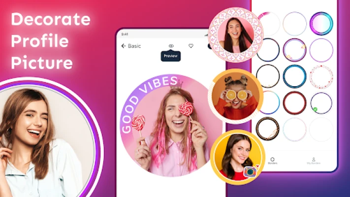 সুন্দর এবং নান্দনিক প্রোফাইল পিকচার বর্ডার তৈরি করে আপনার প্রোফাইল ছবিকে আরও আকর্ষণীয় করে তুলুন। এই প্রোফাইল পিকচার বর্ডার মেকার অ্যাপটি ব্যবহার করে সহজেই আপনার প্রোফাইলে আরও বেশি দর্শক ও ফলোয়ার সংযুক্ত করুন এবং আপনার উপস্থিতি বৃদ্ধি করুন।